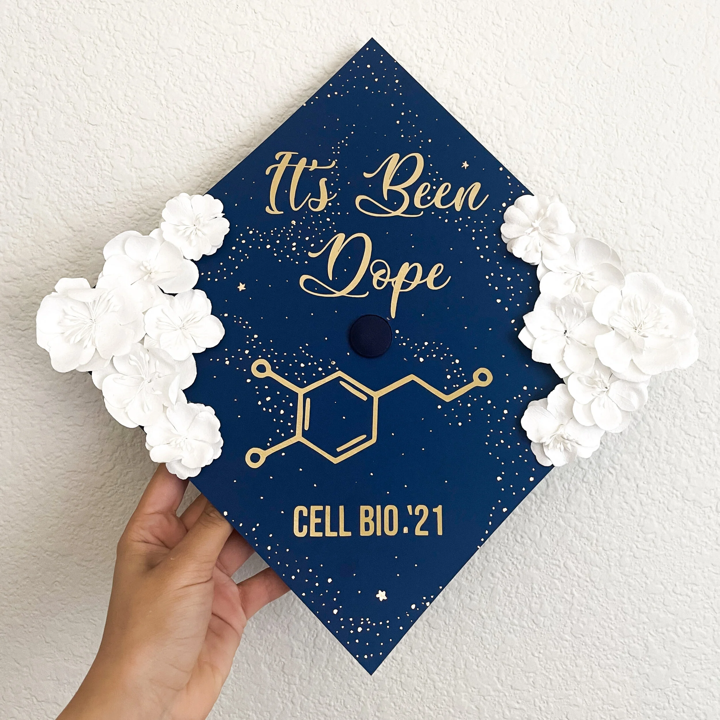 Cap toppers are carefully packaged for safe delivery and immediate application. The packaging will include double-sided mounting tape and an instruction card for attaching the topper to your graduation cap.